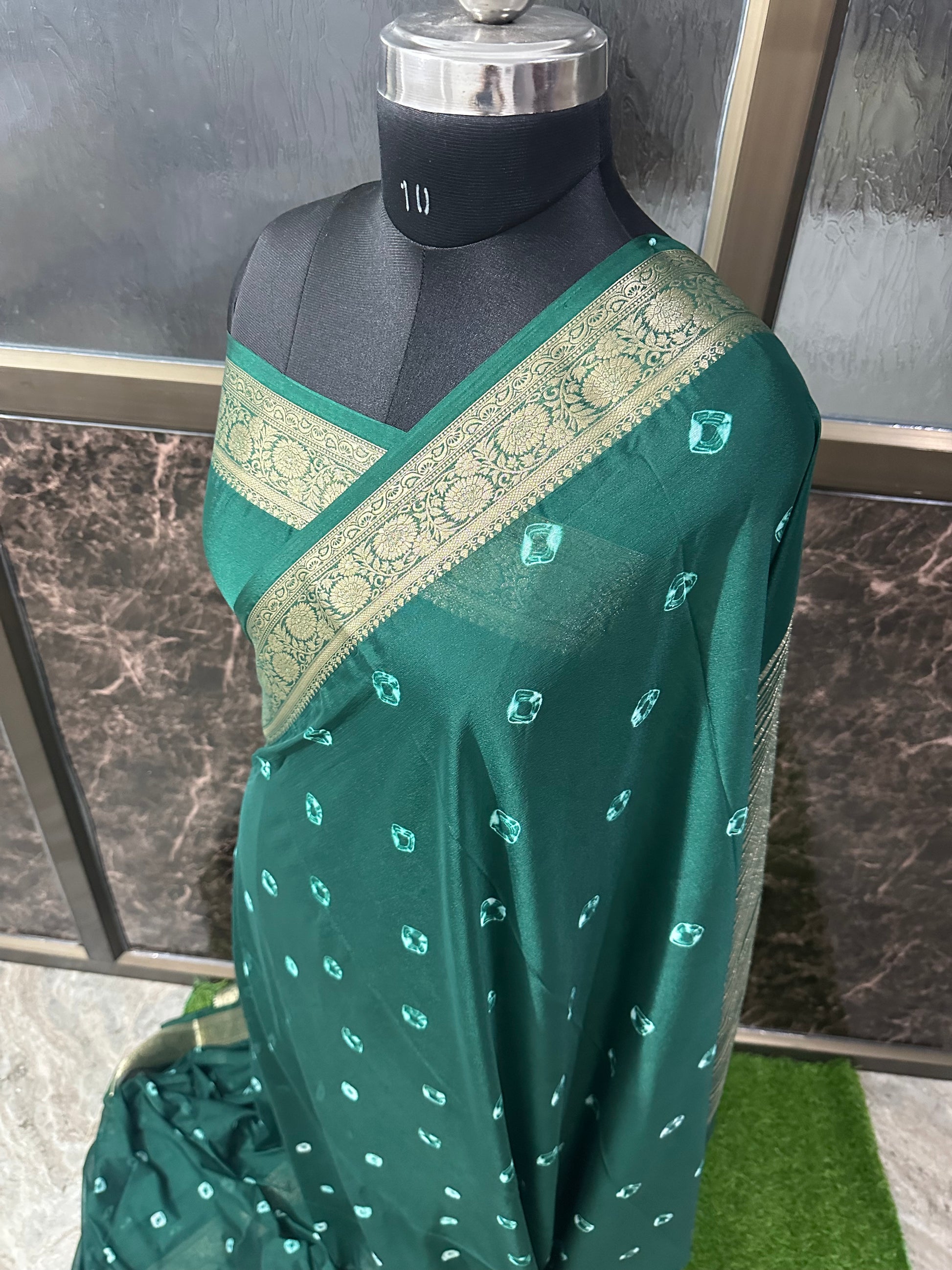 ⦁ Saree Length: 5.5 meters with allover bandhani in body
