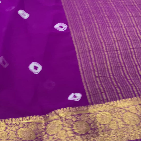 EXPERIENCE UNPARALLELED ELEGANCE WITH THE NEVER SEEN BEFORE CHIFFON BANDHANI SAREE. CRAFTED FROM EXQUISITE CHIFFON , IT FEATURES A ZARI ADORNED PALLU AND A COORDINATING BLOUSE THAT TOGETHER CREATE A REFINED AND SOPHISTICATED ENSEMBLE.