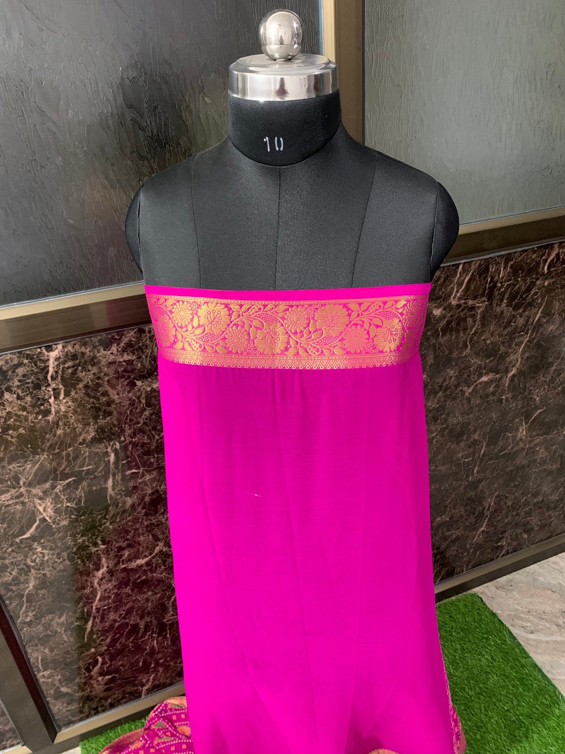 EXPERIENCE UNPARALLELED ELEGANCE WITH THE NEVER SEEN BEFORE CHIFFON BANDHANI SAREE. CRAFTED FROM EXQUISITE CHIFFON , IT FEATURES A ZARI ADORNED PALLU AND A COORDINATING BLOUSE THAT TOGETHER CREATE A REFINED AND SOPHISTICATED ENSEMBLE.